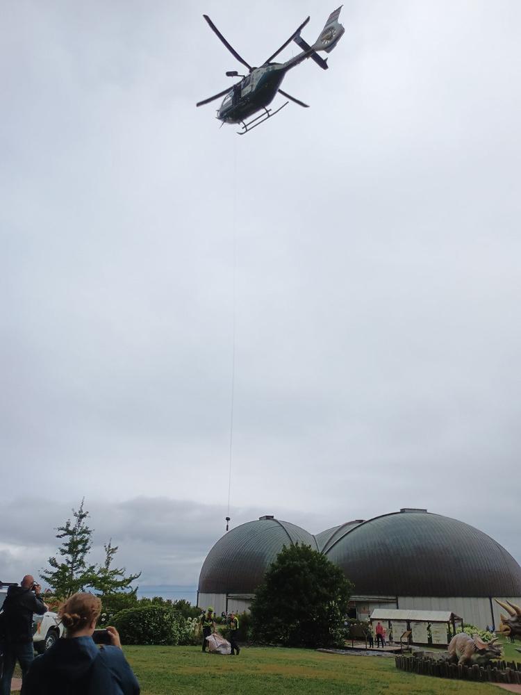 - El bloque fósil se ha trasladado al museo en un helicóptero de la Guardia Civil debido a su peso y la dificultad de acceso a la zona