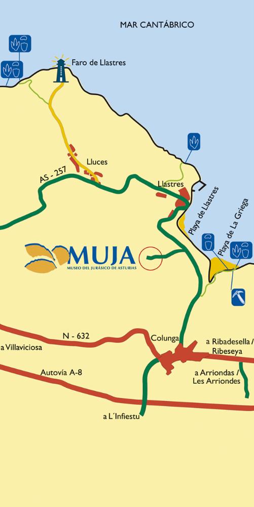 El itinerario arranca desde el mirador de San Roque situado en el lugar más elevado de Llastres, junto a la ermita del mismo nombre. A partir de allí se toma un estrecho camino descendente que coincide con la denominada Ruta del Castillo, hasta alcanzar una pista de tierra más ancha. Una vez en ella, es necesario caminar por la misma hacia la izquierda hasta rebasar una fuente de piedra, ahora prácticamente seca. Un poco más adelante deberemos tomar una senda que parte hacia la derecha en fuerte descenso y nos conduce directamente hasta la base del acantilado.